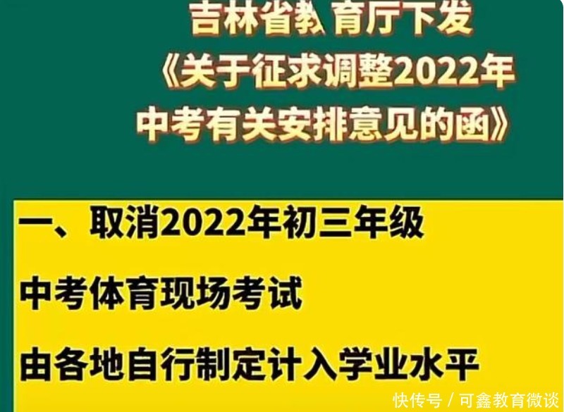 除了武汉市外,吉林省教育厅,也下发取消2022年中考体育现场测试的通知,由此看来,今年中考多省都会做出取消体育考试的举措,这对于中考来说是一个不小的变化。